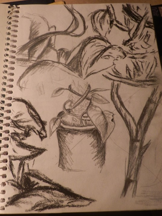 slightly smudged plant study in pencil and charcoal I did do a proper drawing after this but I can’t find that